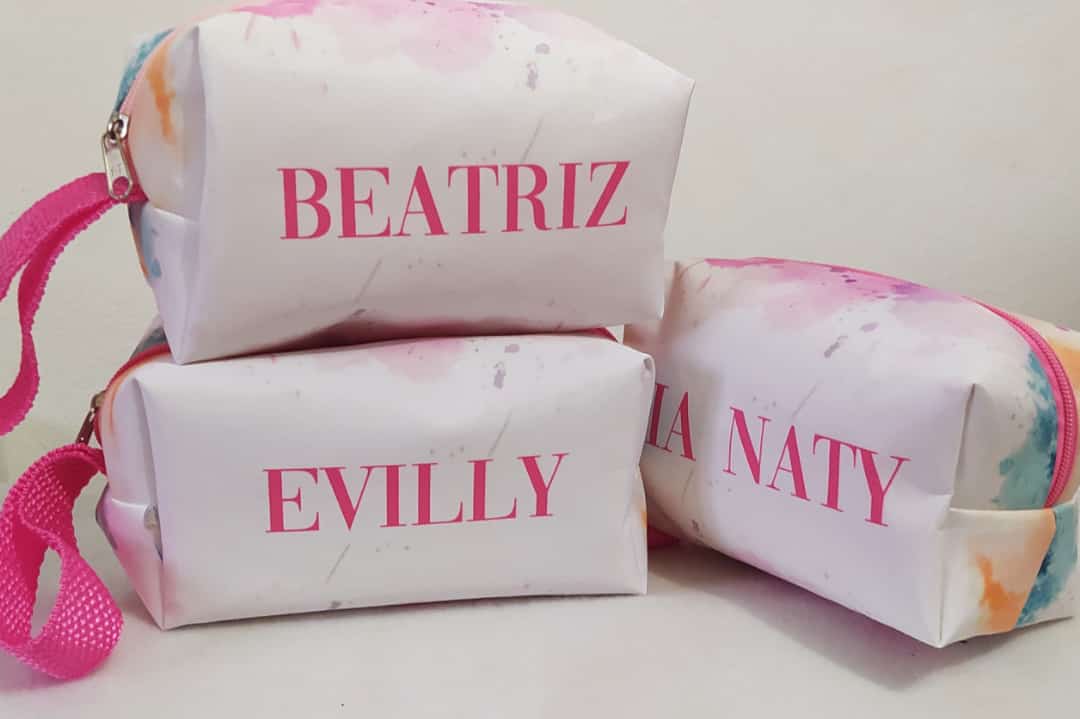 ✅ Necessaire personalizada, produzida com material estruturado em tecido 100% poliéster e Duratran (Nylon 600), com fecho de zíper e imagem estampada no próprio tecido;